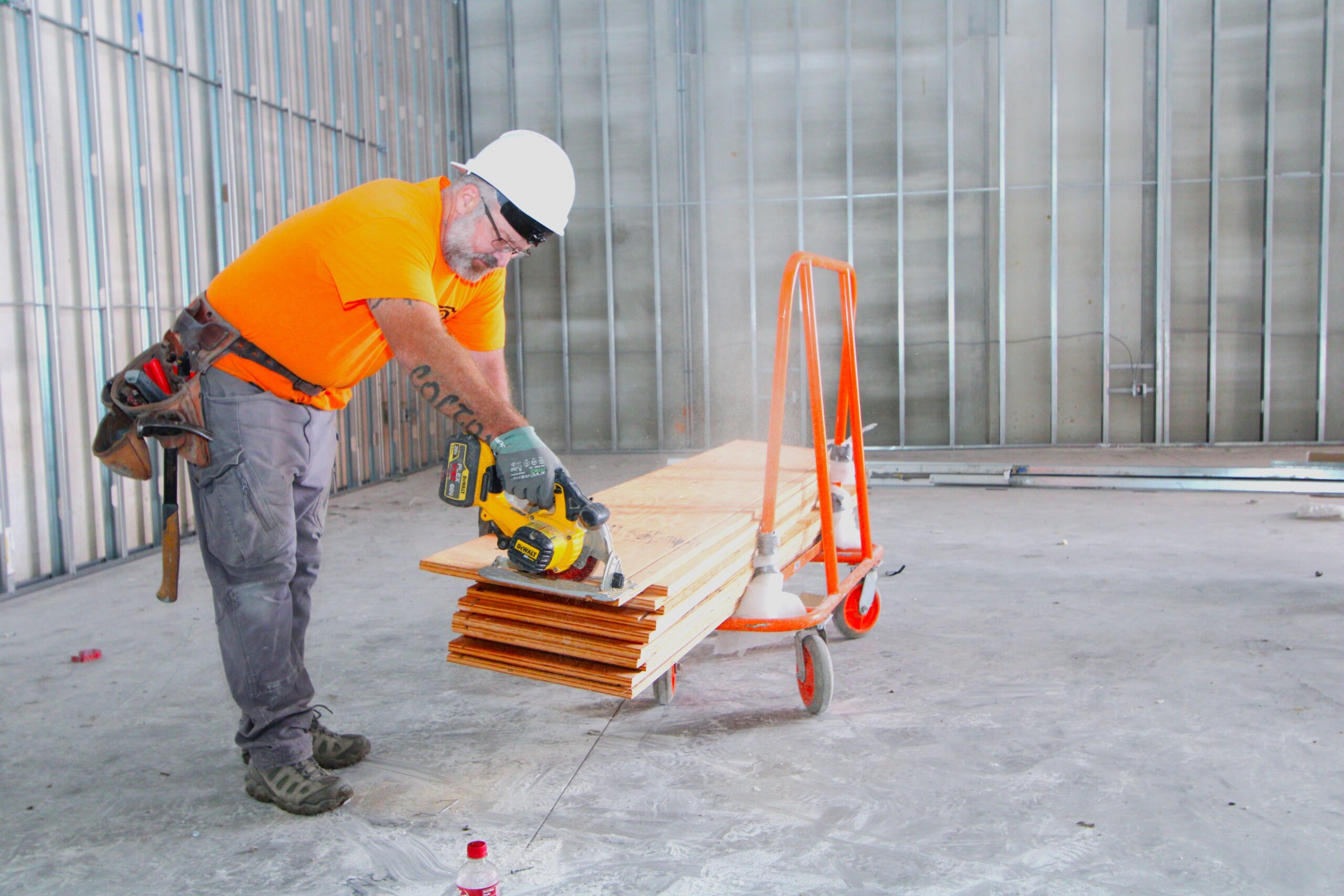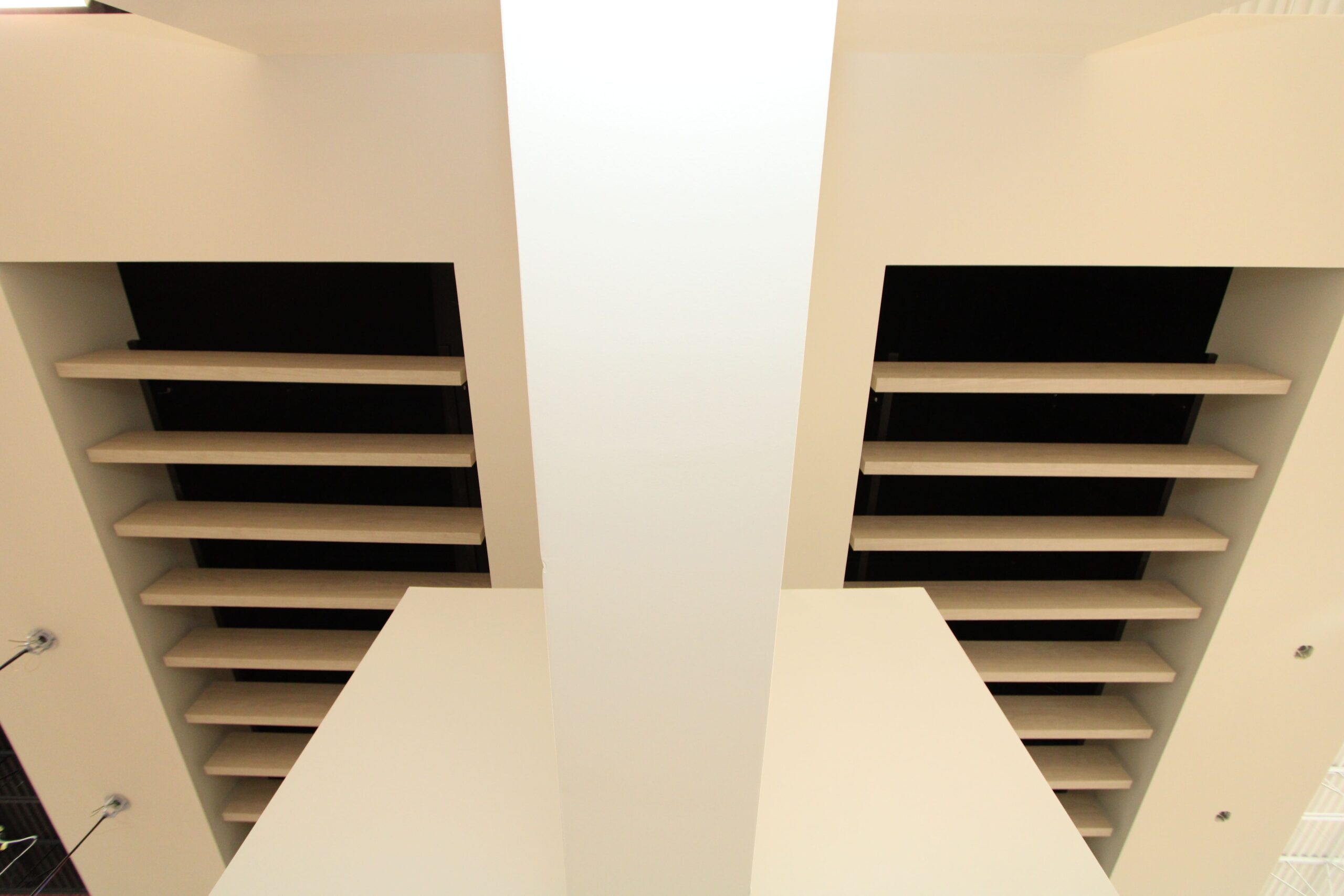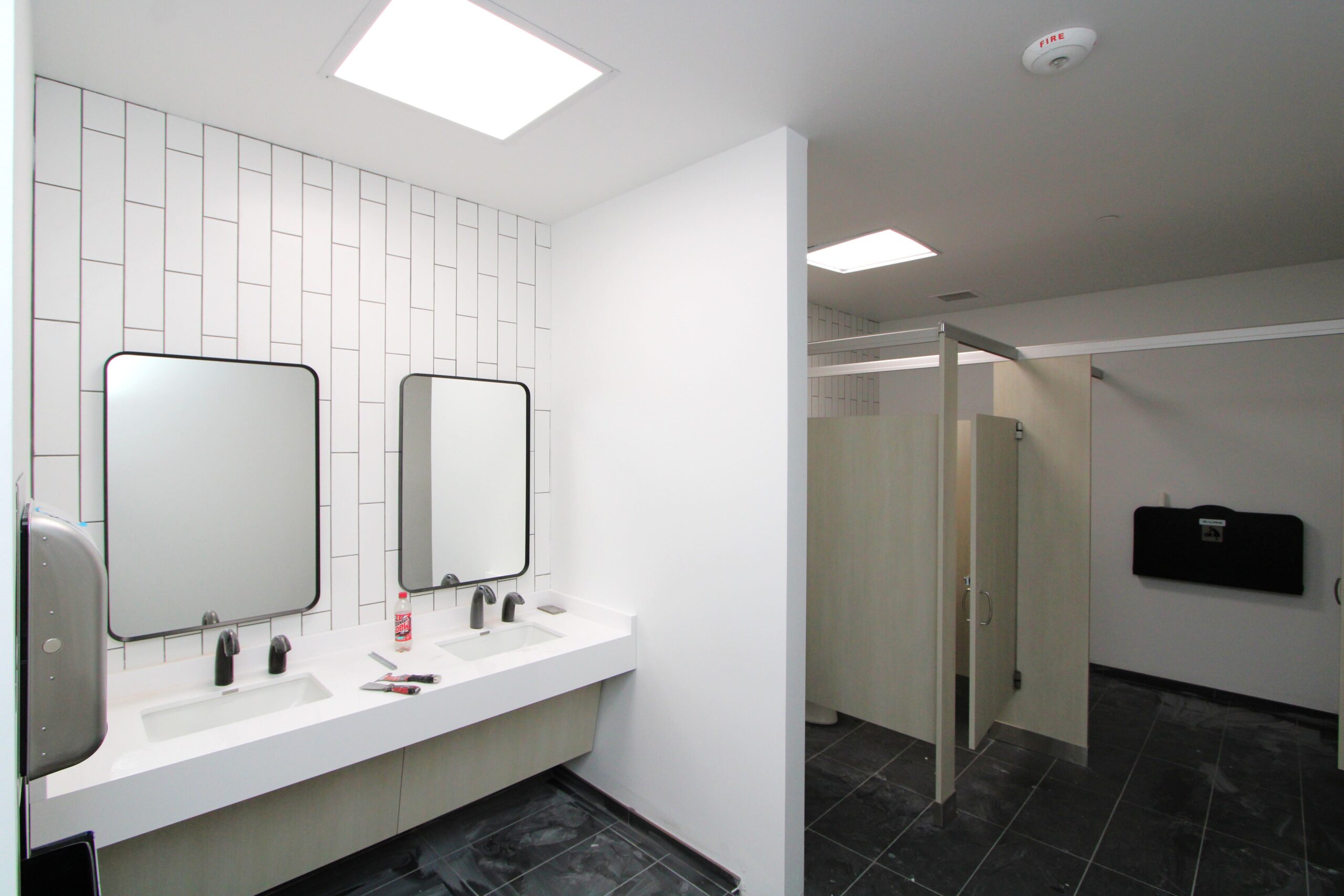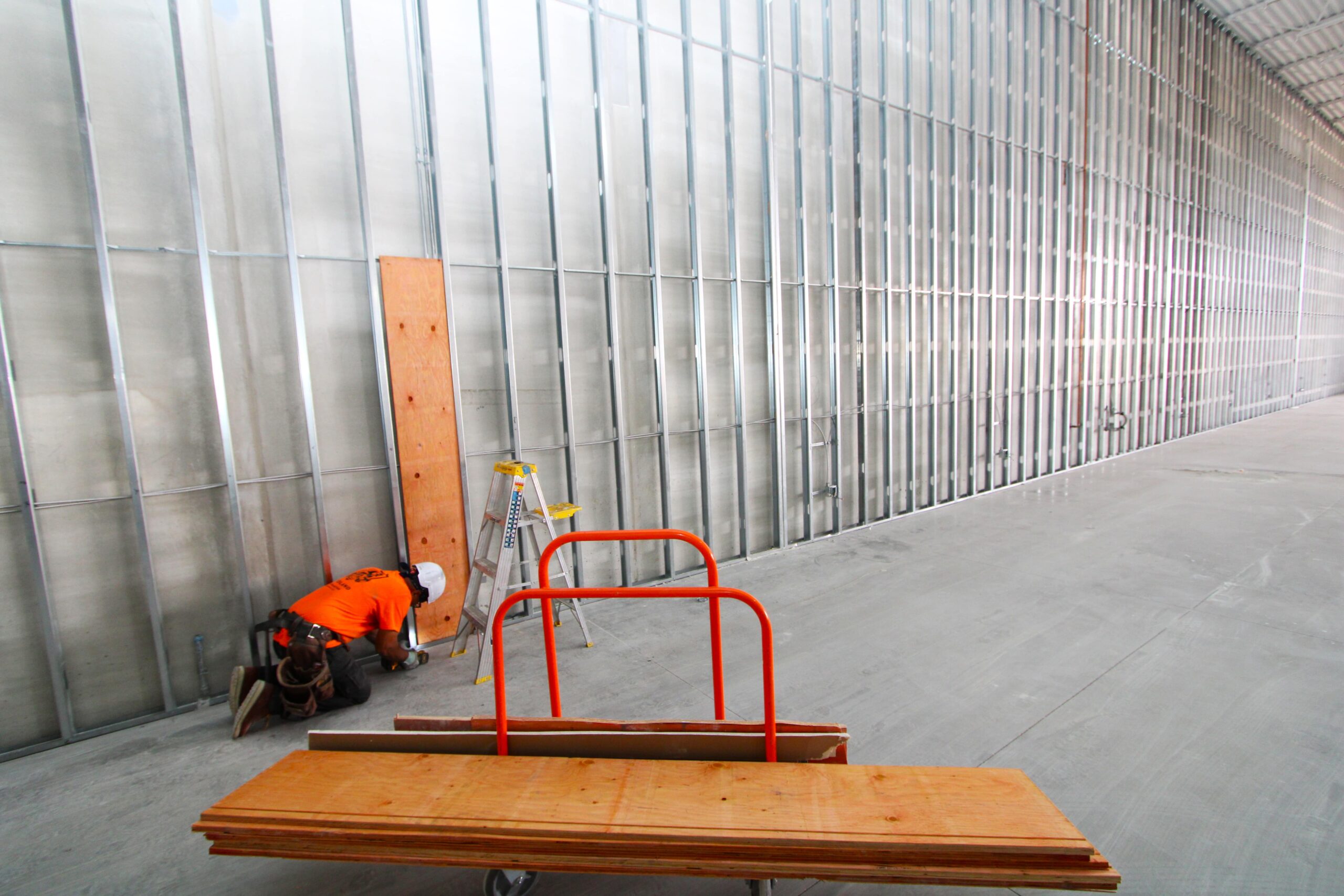 The new Ashley Furniture Store has finished up in Ames, IA! Starting at the beginning of 2025, and finishing just before the end of 2025, JC Toland made a massive impact on this massive warehouse and show-room that is now opened up to the public. Boasting a foot-print of over 90,000 square feet, this new commercial storefront is now one of the largest in the City of Ames.Our role in this job was significant to say the least. We performed all of the priming and painting throughout, which included 90,000+ sq ft of ceiling deck and coating the 20’ tall walls throughout (and all the offices, restrooms, vestibules, showroom floor accent walls, etc). We performed all the drywall hanging and finishing throughout–installing sheetrock, applying mud, sanding and skimming every seam and screwhole throughout. We built all the walls inside–with the awarded contract for all metal-stud framing throughout the facility. And we were also in charge of setting all grid and installing all acoustic ceiling tiles throughout. Pictured below, you’ll see some of our finish carpenters working through the aesthetic finish touches in the mattress showroom; as well as one of our foreman finishing the ACT in one of the front offices. The decorative hanging framing/drywall sections were all built-out and installed by our team as well.